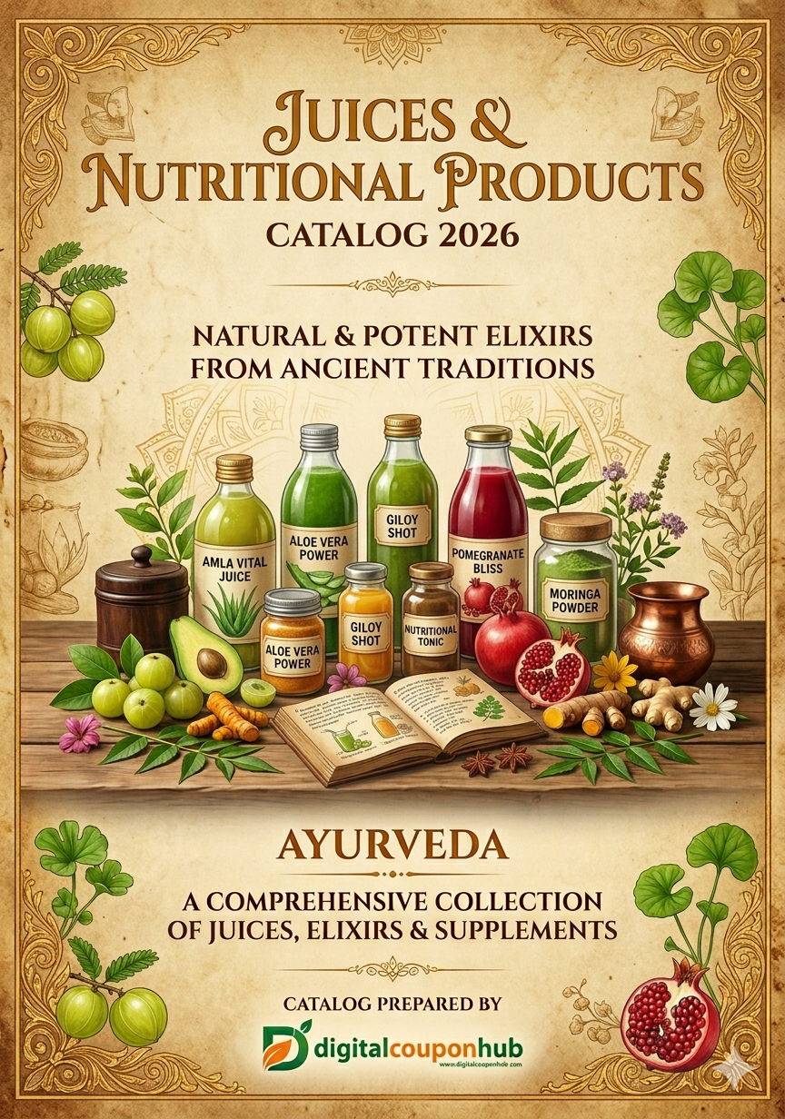 "Discover our 2026 catalog of Ayurvedic Juices and nutritional products! From antioxidant-rich blends to immunity-boosting options, our natural and organic offerings promote wellness. Enhance digestion, increase energy, and support overall health with our Ayurvedic products. Take the first step towards a healthier lifestyle today!"